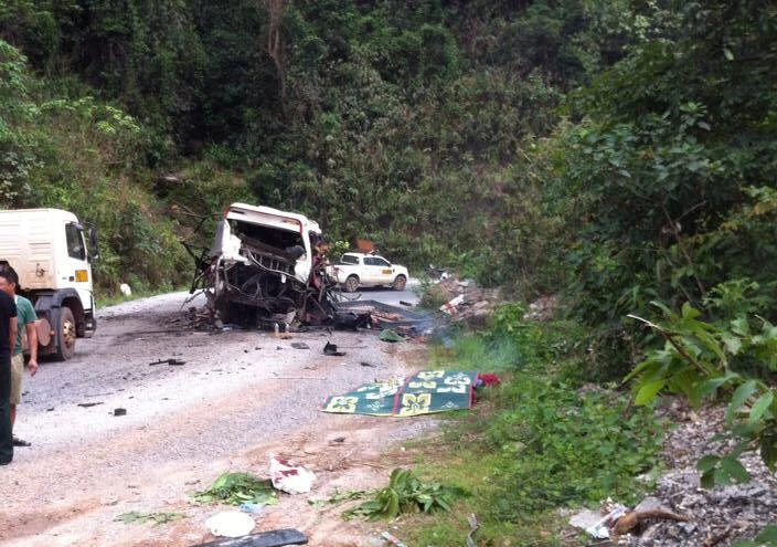 Tại điểm tai nạn đường đồi núi, cua gấp và có dốc cao.