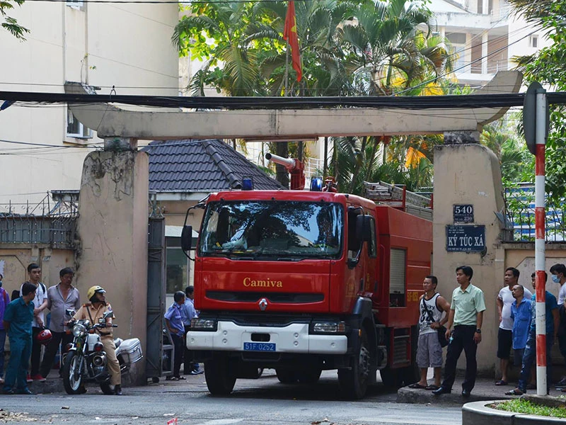 Thông tin ban đầu, khoảng 16 giờ chiều 17-2, nhiều sinh viên tại ký túc xá ĐH Y Dược TP.HCM trên đường Ngô Gia Tự (phường 9, quận 5) hốt hoảng phát hiện khói lửa dữ dội bùng phát ở nhà để xe trong khuôn viên ký túc.