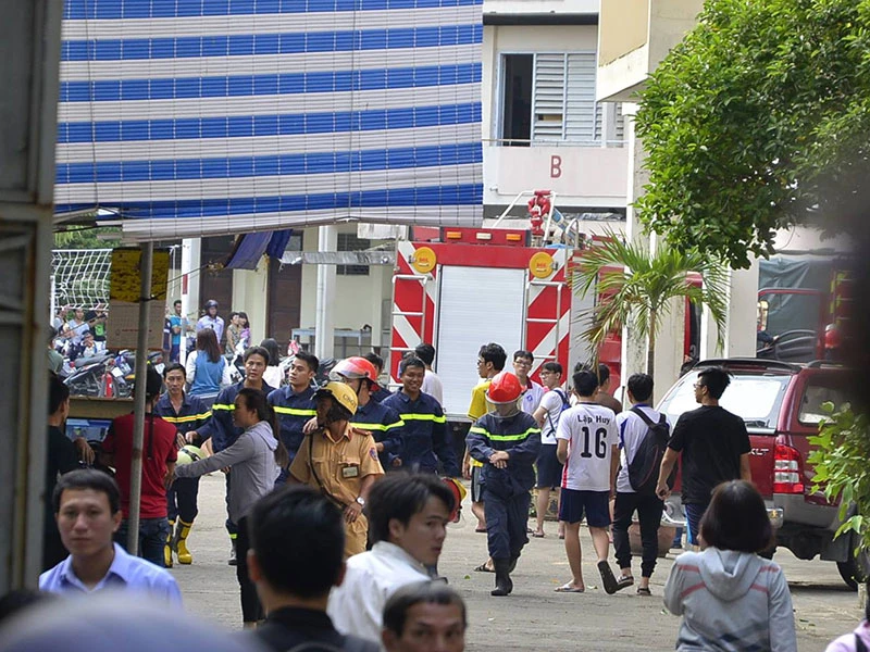 “Đây là sân trường và được tận dụng làm bãi giữ xe cho sinh viên có mái che với sức chứa khoảng 300 chiếc xe máy. Cảnh sát PCCC đã di chuyển khoảng 290 chiếc xe ra ngoài an toàn” - người này nói.
