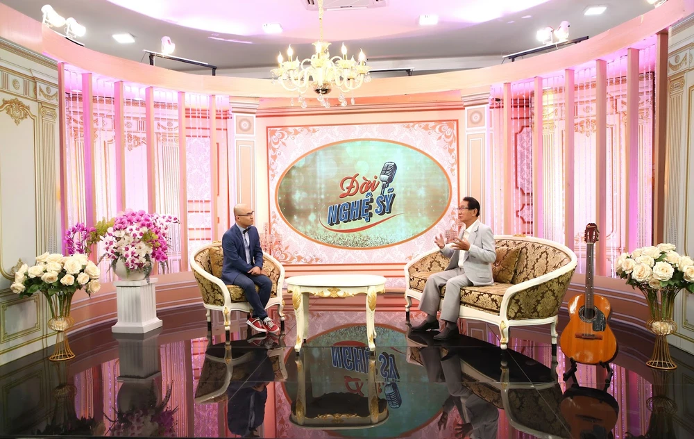 MC Minh Đức và nhạc sĩ Đài Phương Trang trong chương trình "Đời nghệ sĩ". Ảnh: BTC.