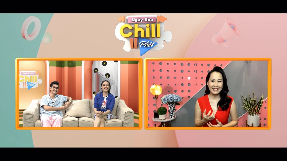 Nhạc sĩ Giáng Son cùng MC Công Tố, Phí Linh tại Ngày xưa Chill phết. Ảnh: Chụp màn hình.
