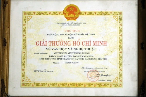 Và với hai ca khúc Một khúc tâm tình của người Hà Tĩnh và Người đi xây hồ Kẻ Gỗ, nhạc sĩ Nguyễn Văn Tý đã được tỉnh Hà Tĩnh tri ân mỗi tháng 5 triệu đồng từ tháng 9-2014 đến cuối đời là ngày 26-12 khi ông trút hơi thở cuối cùng tại TP.HCM.