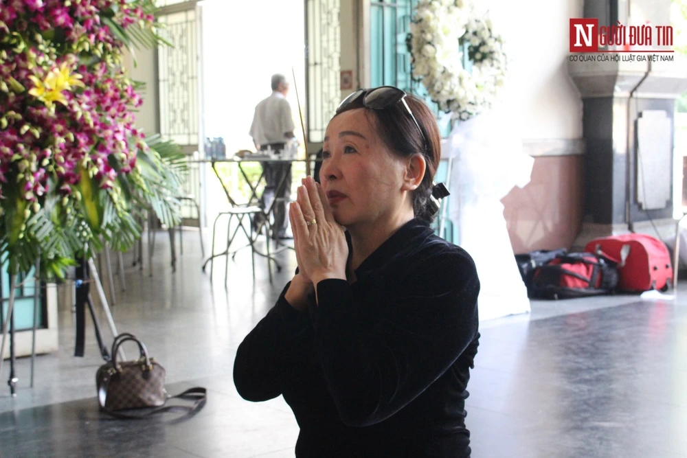 NSND Thu Hiền từ Hà Nội vào TP.HCM để tiễn biệt nhạc sĩ Nguyễn Văn Tý. NSND Thu Hiền ghi vào sổ tang: “Cháu vô cùng tự hào đã thể hiện ca khúc Một khúc tâm tình của người Hà Tĩnh của bác”. Ảnh: NĐT