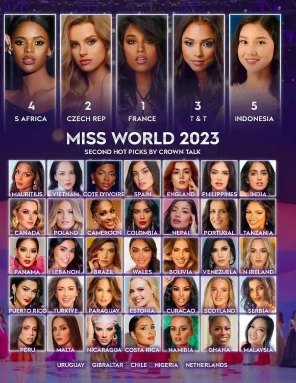 Chuyên trang sắc đẹp uy tín Crown Talk đã đăng tải bảng xếp hạng dự đoán những gương mặt sáng giá, có cơ hội lọt vào top cao cho cuộc thi Miss World 2023.