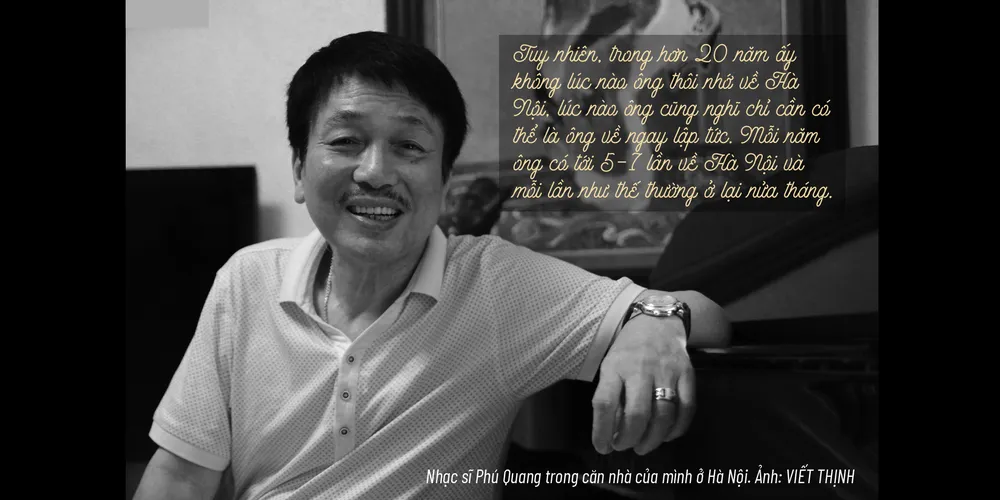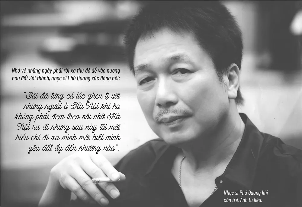 Chia sẻ với tác giả bài viết về những nỗi nhớ Hà Nội của mình khi đang ở TP.HCM, nhạc sĩ Phú Quang nói: “Có những nỗi nhớ tưởng như cụ thể mà không cụ thể, đôi khi chỉ là một ánh mắt, một cái bím tóc đuôi sam thôi, hay cả những nụ hôn lạnh ngày đông. Ngày xưa, Hà Nội có ai chờ nhau ở khách sạn đâu mà toàn chờ nhau ở gốc cây. Khi tôi đến thì cô gái của tôi ngồi dưới cơn mưa phùn, với vòng tay ướt và vành môi lạnh. Đó là những điều nhỏ bé nhưng khi đi xa rồi mới thật sự thấy nó thiêng liêng nhường nào”.