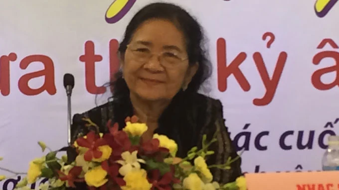 Nhạc sĩ Trương Tuyết Mai tại buổi họp báo sáng 15-4 - Ảnh: Q.N.