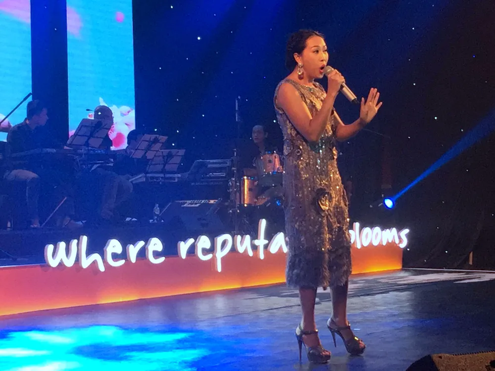 Ca sĩ Nguyên Thảo hát Những mùa hoa bỏ lại của nhạc sĩ Việt Anh tối 24-2. Ảnh: Quỳnh Trang