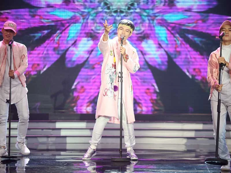 Thí sinh Phạm Anh Duy (giữa) thuộc đội nhà sản xuất Khắc Hưng và Trung Quân biểu diễn trong chương trình Khởi đầu ước mơ. Ảnh: BTC cung cấp