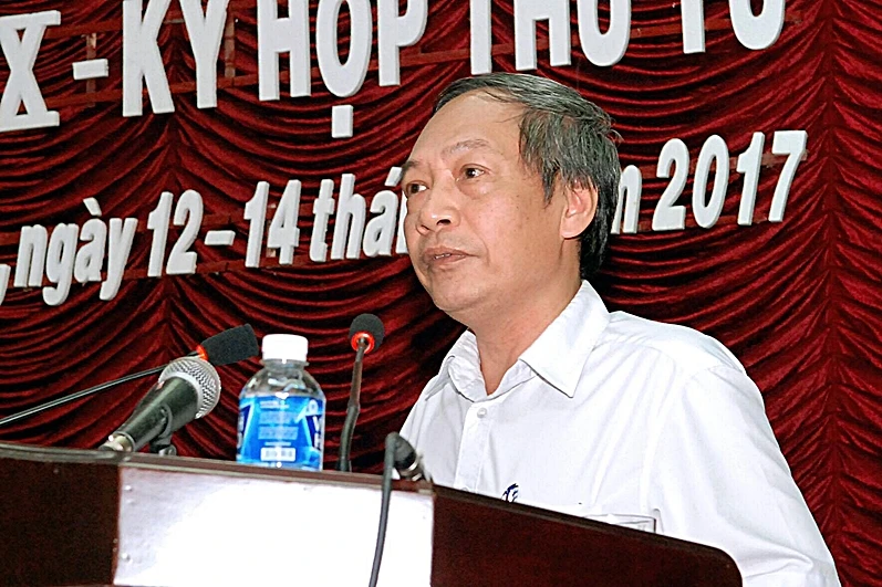 Ông Phạm Ngọc Sơn, Phó Tổng cục trưởng, Tổng cục biển hải đảo VN đang trình bày dự án cho nhận chìm 1 triệu m3 bùn, cát xuống vùng biển Tuy Phong, trước HĐND tỉnh Bình Thuận.