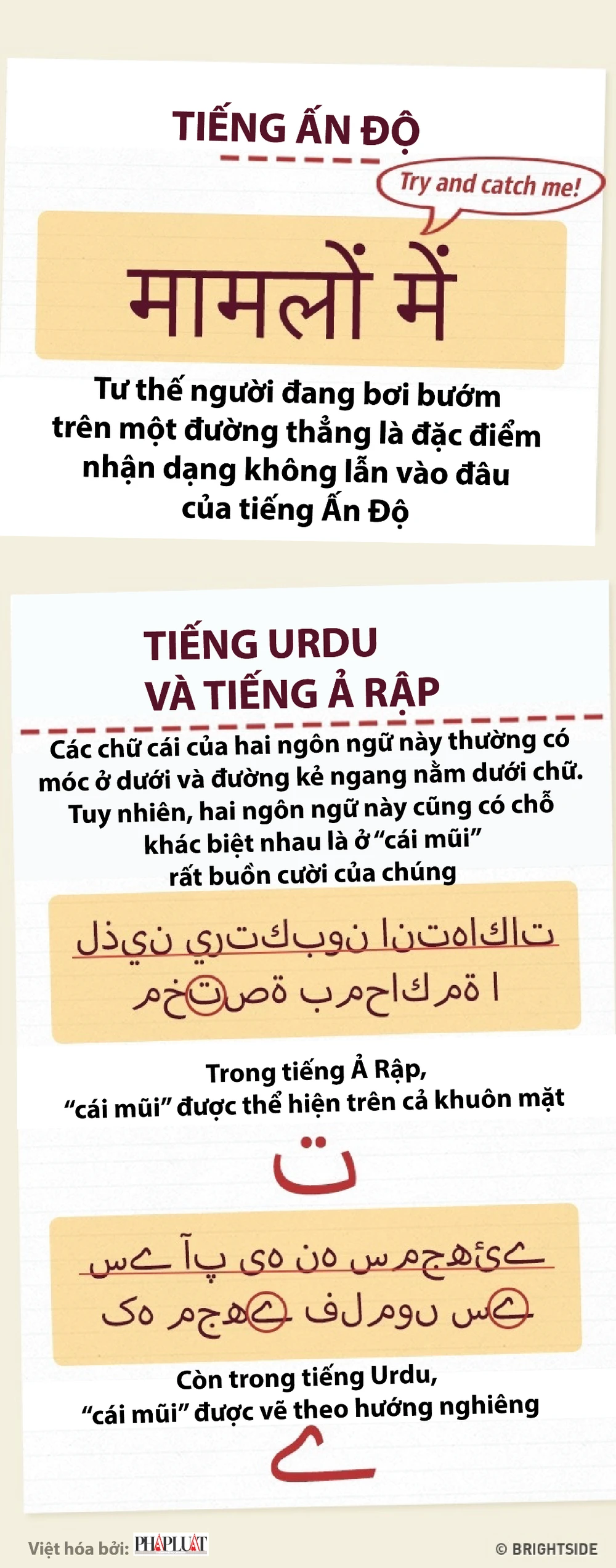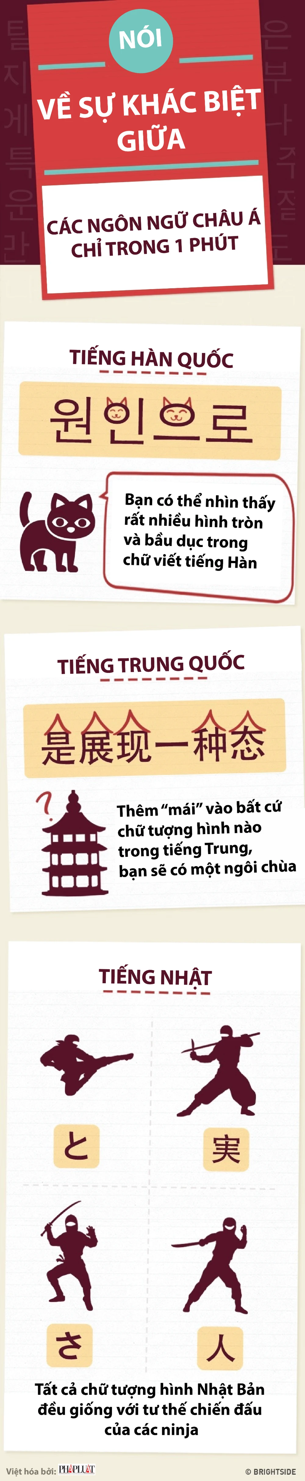 (PLO)- Mặc dù những ngôn ngữ châu Á đang được hàng tỉ người sử dụng nhưng không nhiều người nhận biết được những thú vị ẩn chứa trong những thứ tiếng này. Trang tin Bright Side đã giúp chúng ta phân biệt được các ngôn ngữ châu Á chỉ trong một phút.