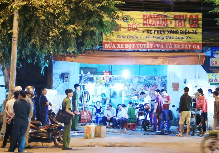 Hiện trường nơi sửa xe máy dẫn đến vụ án mạng nghiêm trọng.