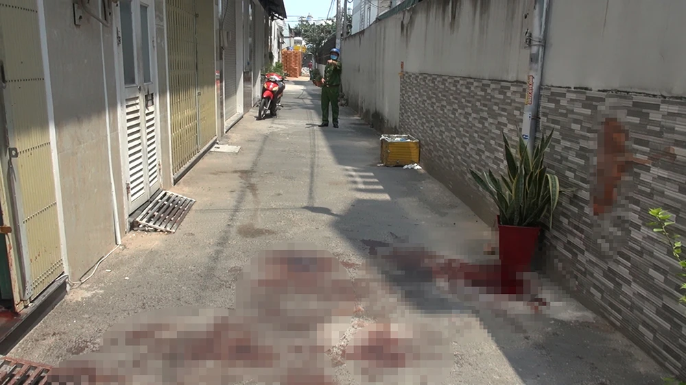 Một số người dân nghe tiếng chạy vào nhà trọ thì phát hiện nam thanh niên đã gục chết ở cổng, trên người có vết thương mất nhiều máu.