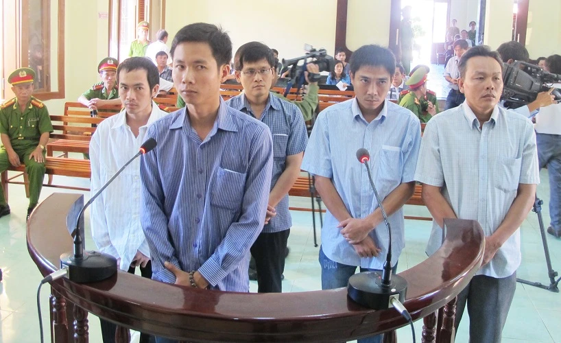 Hội đồng xét xử phiên tòa phúc thẩm vụ 5 công an đánh chết người ở Phú Yên. Ảnh: Tấn Lộc