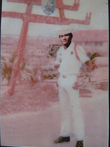 Trung sĩ Nguyễn Thành Trọng chụp ảnh lưu niệm tại Hoàng Sa trước khi hi sinh trên chiến hạm Nhật Tảo (HQ10) vào 19-1-1974.