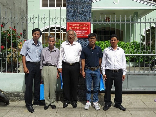 Các nhân chứng chụp ảnh lưu niệm cùng lãnh đạo UBND huyện Hoàng Sa