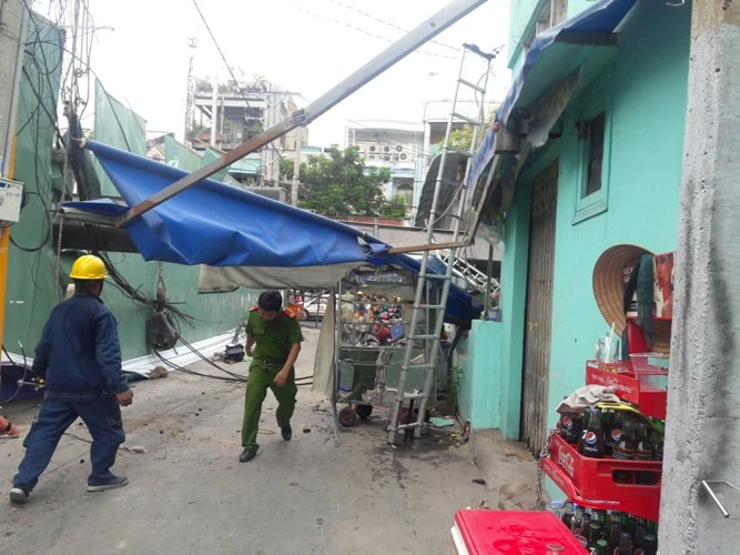 Chiếc cần cẩu đổ sập khiến giao thông bị ùn tắc cục bộ, tường rào tôn đứt toác, hệ thống dây điện cũng đứt hết. Tuy nhiên, chỉ trong thời gian ngắn, lực lượng chức năng đã có mặt kịp thời để giải quyết vụ việc.