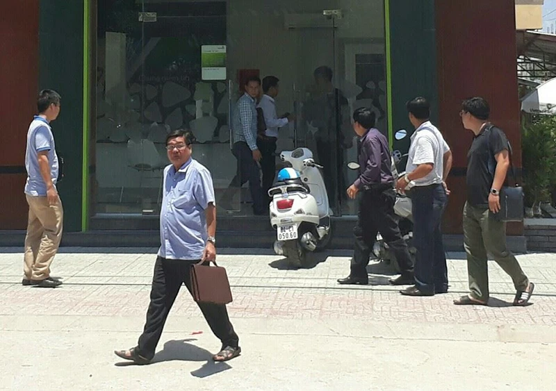 Đoàn công tác C45 - Bộ Công an đến hiện trường vụ cướp ngân hàng. Ảnh: T.Huy