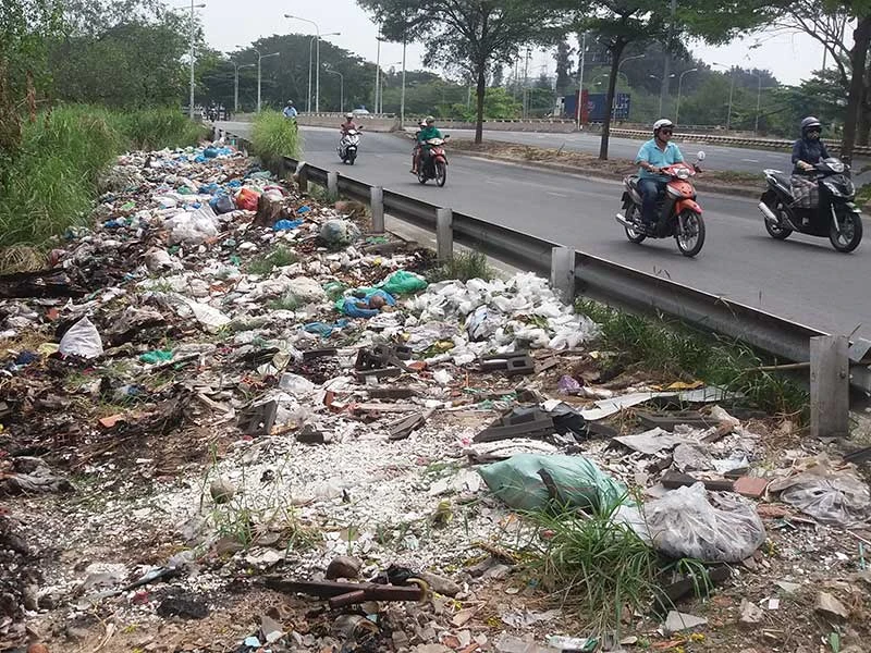 Rác đủ loại trên đường Nguyễn Văn Linh,huyện Bình Chánh, TP.HCM. Ảnh: HTD