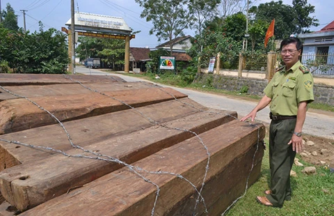 Số gỗ quý bị lâm tặc chặt phá, tập kết gần Trạm bảo vệ rừng Cà Nhông. Ảnh: TT