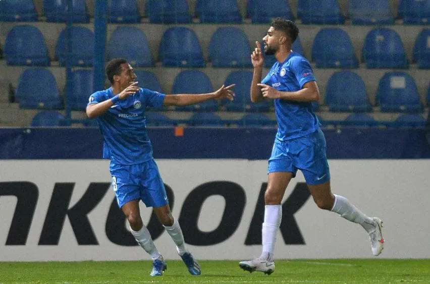 Helal ăn mừng bàn thắng duy nhất trận đấu cùng đồng đội. ẢNH: UEFA