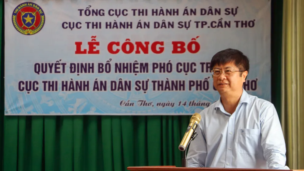 Chiều 14-10, Cục Thi hành án dân sự (THADS) TP Cần Thơ tổ chức lễ công bố các quyết định của bộ trưởng Bộ Tư pháp về công tác cán bộ. Đến dự có ông Trương Quang Hoài Nam, Phó Chủ tịch UBND TP Cần Thơ.