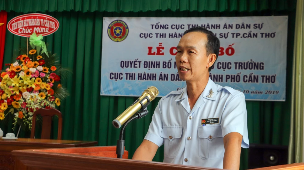 Ông Nguyễn Hữu Hùng, tân Phó Cục trưởng Cục THADS TP Cần Thơ, phát biểu. Ảnh: CHÂU ANH