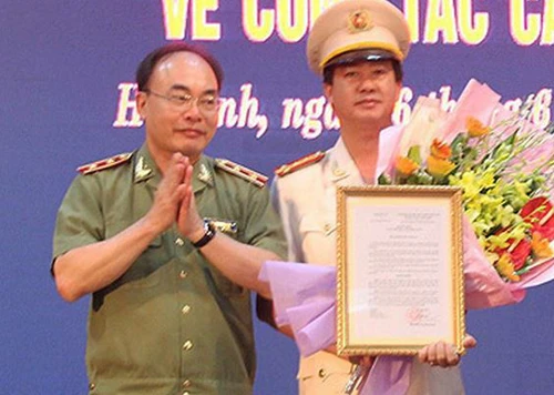 Đại tá Lê Văn Sao (phải) được bổ nhiệm làm Giám đốc Công an tỉnh Hà Tĩnh. Ảnh: X.L