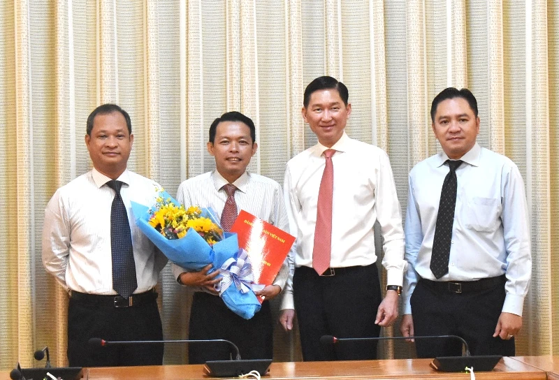 Chúc mừng hai ông nhận nhiệm vụ mới, Phó Chủ tịch UBND TP Trần Vĩnh Tuyến mong muốn các ông Đinh Ngọc Thắng và Võ Văn Tuấn đoàn kết nội bộ, đảm bảo sự lãnh đạo của Đảng tại đơn vị để hoàn thành nhiệm vụ.