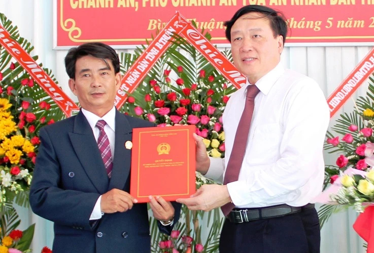 Chiều nay (4-5) Chánh án TAND Tối cao Nguyễn Hòa Bình đã công bố và trao quyết định bổ nhiệm chức vụ chánh án TAND tỉnh Bình Thuận cho ông Biện Văn Hoan.