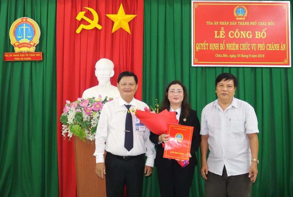Theo đó, bổ nhiệm bà Lư Thị Châu Ngọc, sinh năm 1977, hiện là thẩm phán trung cấp TAND TP Châu Đốc giữ chức vụ phó chánh án tòa này, mhiệm kỳ là năm năm kể từ ngày ký quyết định.