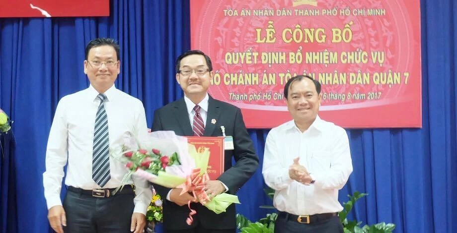 Theo đó, ông Lê Thuần Phong, thẩm phán sơ cấp, công tác tại TAND quận 7, giữ chức vụ phó chánh án TAND quận này. Thời gian giữ chức vụ của ông là năm năm, kể từ ngày 15-8.
