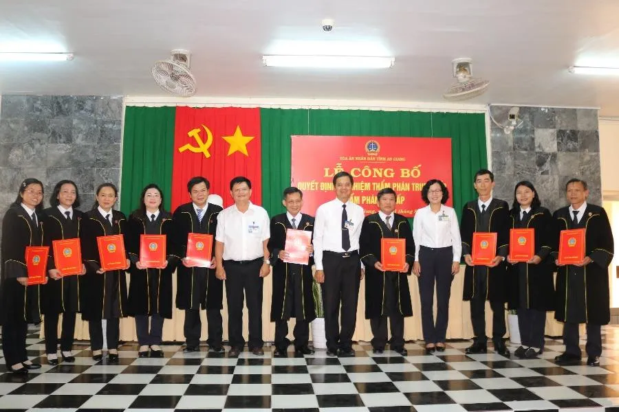 Chiều 1-8, TAND tỉnh An Giang đã tổ chức long trọng buổi lễ công bố quyết định của Chủ tịch nước về việc bổ nhiệm chức danh thẩm phán trung cấp, thẩm phán sơ cấp thuộc TAND hai cấp tỉnh An Giang.