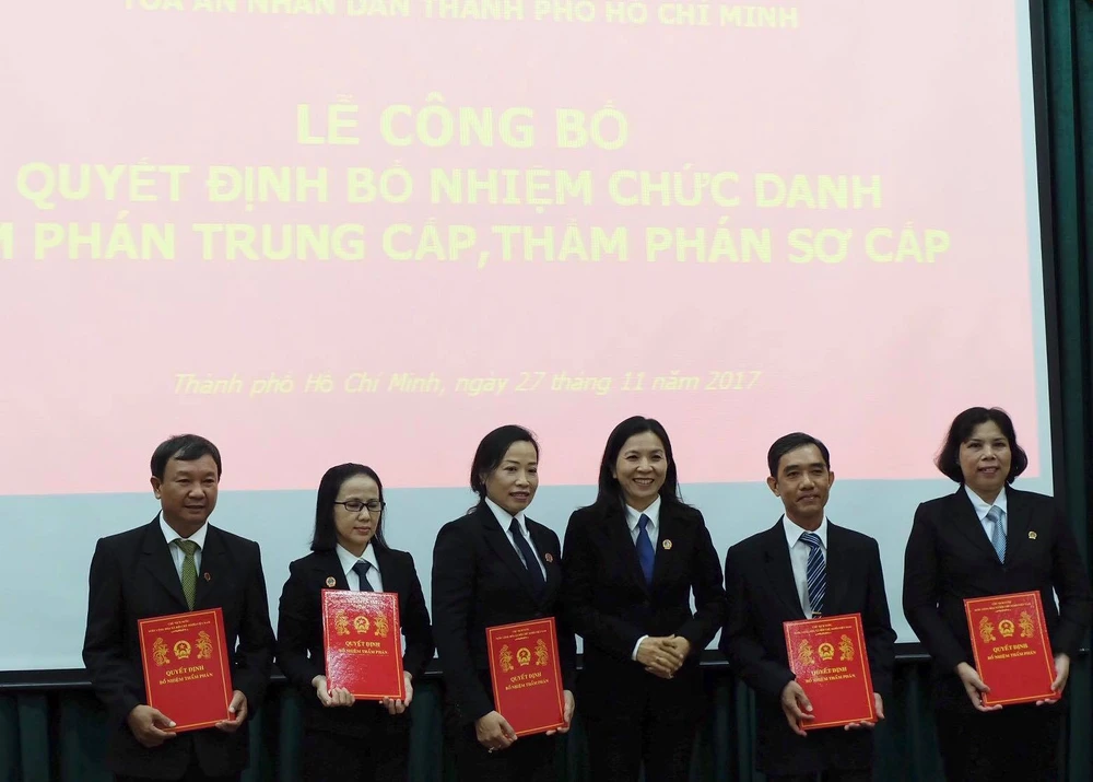 Đồng thời, 22 ông bà thư ký tại TAND các quận 1, 2, 6, 7, 9, 12, Phú Nhuận, Tân Bình và huyện Nhà Bè được bổ nhiệm giữ chức danh thẩm phán sơ cấp.
