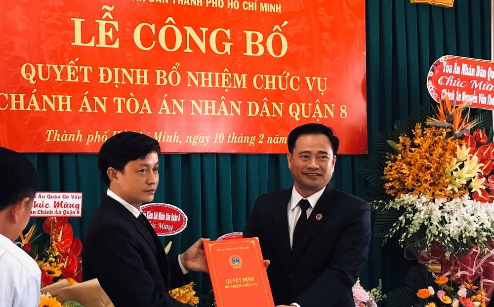 Theo đó, ông Nguyễn Văn Thanh (SN 1975), thẩm phán trung cấp, phó chánh án TAND quận 8, giữ chức vụ chánh án TAND quận này. Nhiệm kỳ của ông Thanh là năm năm kể từ ngày 15-2.