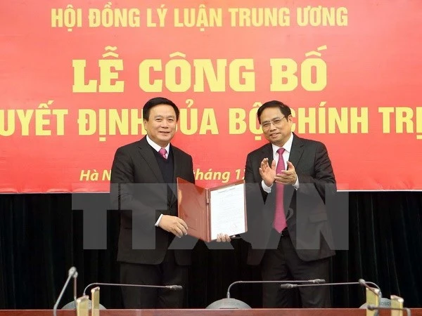 Trao quyết định cho đồng chí Nguyễn Xuân Thắng, Ủy viên Bộ Chính trị, Bí thư Trung ương Đảng, Trưởng ban Tổ chức Trung ương Phạm Minh Chính nhấn mạnh để đảm bảo sự lãnh đạo trực tiếp, toàn diện, thường xuyên, liên tục của Bộ Chính trị, Ban Bí thư và Trung ương Đảng đối với công tác lý luận của Đảng; căn cứ vào quy chế làm việc của Ban Chấp hành Trung ương, Bộ Chính trị, Ban Bí thư, Bộ Chính trị đã thống nhất, quyết định phân công đồng chí Nguyễn Xuân Thắng, Bí thư Trung ương Đảng, Giám đốc Học viện Chính trị Quốc gia Hồ Chí Minh, Phó Chủ tịch Hội đồng Lý luận Trung ương phụ trách Hội đồng Lý luận Trung ương trong thời gian đồng chí Đinh Thế Huynh, Thường trực Ban Bí thư, Chủ tịch Hội đồng Lý luận Trung ương, nghỉ điều trị bệnh.