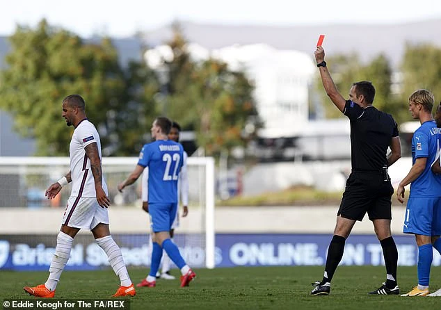 Walker nhận thẻ đỏ rời sân. ẢNH: THE FA
