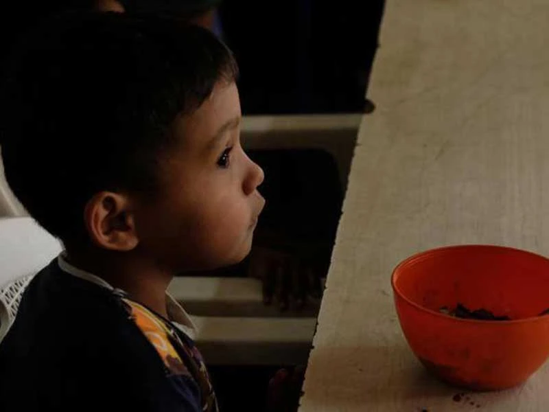 Cậu bé Imael (năm tuổi) với bữa ăn duy nhất trong ngày chỉ có cơm và đậu. Ảnh: CNN