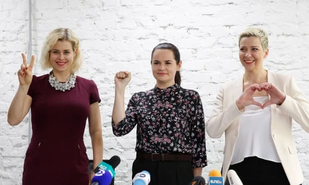 Ba nhân vật đối lập Belarus từ trái qua: Bà Veronika Tsepkalo, bà Svetlana Tikhanovskaya và bà Maria Kolesnikova. Ảnh: Tatyana Zenkovich/EPA