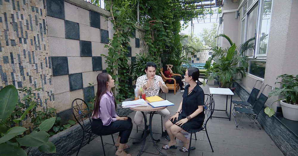 Nhân vật Hà Trí Quang chia sẻ về tình trạng sức khỏe của mình cho nhân vật Hồ Bích Trâm nghe. Ảnh: BEE