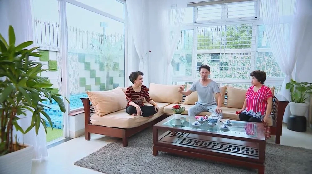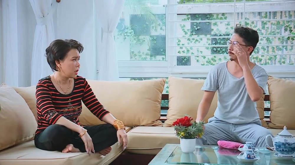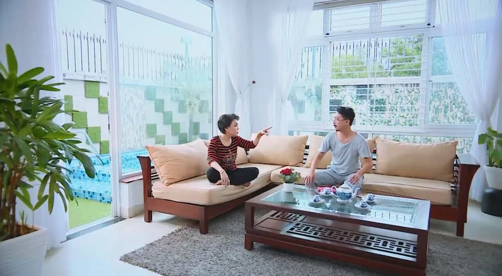 Đang cãi qua cãi lại, nhân vật Phi Phụng vừa tới gặp cảnh này liền nói: “Vợ chồng có hai đứa con xinh xắn vậy mà tự nhiên ngủ riêng là sao?”.