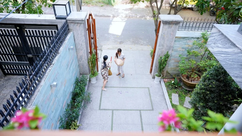 Mở đầu tiểu phẩm tình huống, nhân vật Đào Vân Anh đang cầm chổi quét sân thì thấy nhân vật Lê Bê La đi ngang qua nên hối hả chạy ra kéo đàn em vào trong.