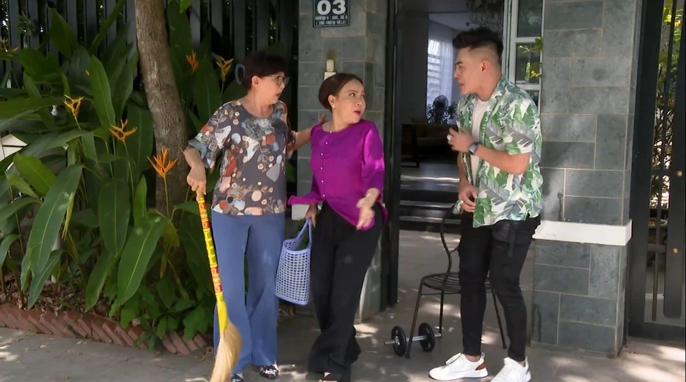 Hai chị em đang nói chuyện thì nhân vật Việt Hương hớt hơ hớt hải chạy ngang qua, vô tình va phải nhân vật Phương Dung. Ảnh: BEE