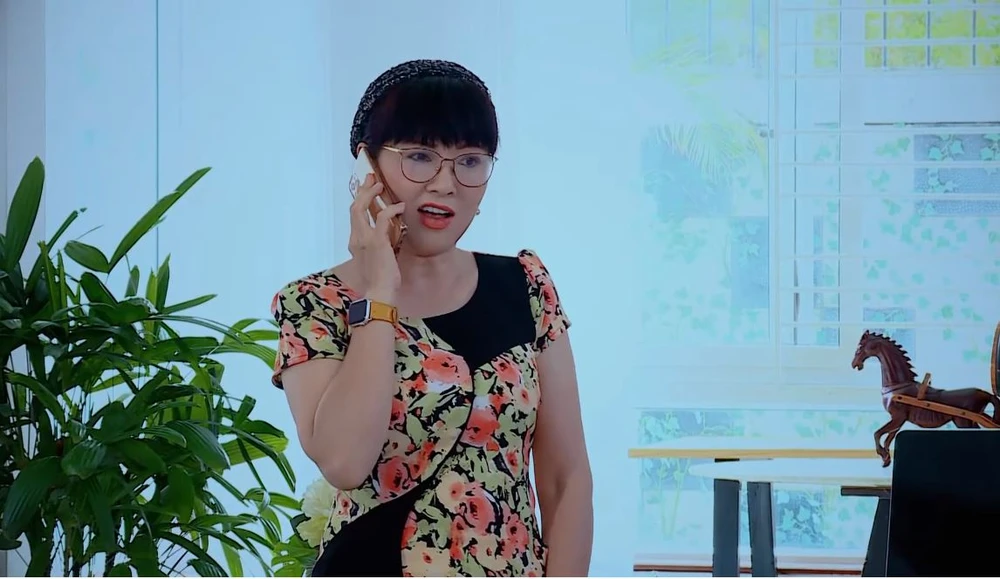 Nhân vật Phương Dung nói chuyện tình tứ qua điện thoại với trai lạ. Ảnh: BEE