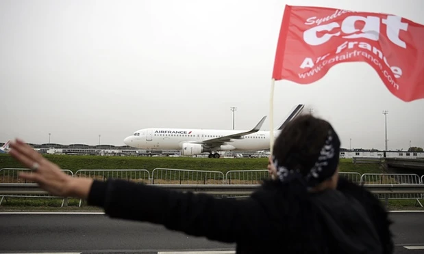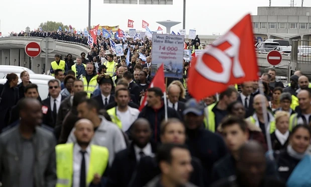 Đám đông biểu tình đứng chật đường vào sảnh nhà ga sân bay này. Khi đặt chân đến công ty, các quan chức lãnh đạo bị bủa vây bởi đám đông hò hét. Vào tới phòng họp, nhận thấy tình hình không ổn, Giám đốc điều hành hãng này là ông Frédéric Gagey vội chạy trốn ra ngoài.