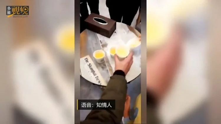 Những ly nước tiểu được chuẩn bị để ép nhân viên uống. Ảnh cắt từ clip