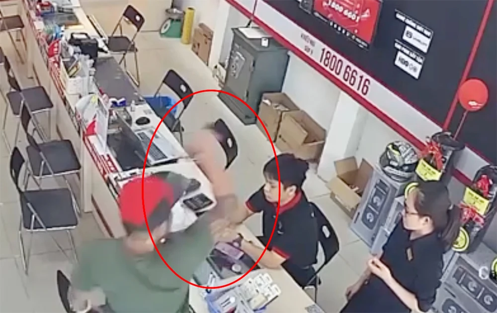 Lát sau, người này chở theo một phụ nữ đến. Người phụ nữ cầm theo chiếc điện thoại trước đó được mang đến hỏi bán và nói điện thoại bị khóa, yêu cầu nhân viên mở khóa. Trong lúc chờ nhân viên kiểm tra, người đàn ông cầm gậy sắt vụt vào đầu anh H.
