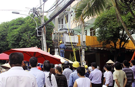 Qua kiểm tra, họ phát hiện một người đàn ông mặc đồng phục ngành điện lực treo lơ lửng ở trụ điện trên đường. Nhiều người tìm cách cứu nhưng sợ điện giật đành bất lực. Ngay sau đó nhân viên điện lực có mặt ngắt điện để giải cứu nạn nhân. Nhân viên y tế đến hiện trường tổ chức sơ cứu, hô hấp ban đầu rồi đưa nạn nhân về BV Trưng Vương cấp cứu.