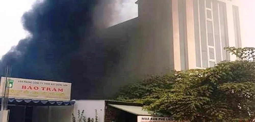 Khói từ đám cháy theo hướng gió lùa vào chi nhánh một ngân hàng gần đó. Nhiều nhân viên của ngân hàng này tháo chạy ra ngoài đồng thời kéo vòi nước dập lửa.