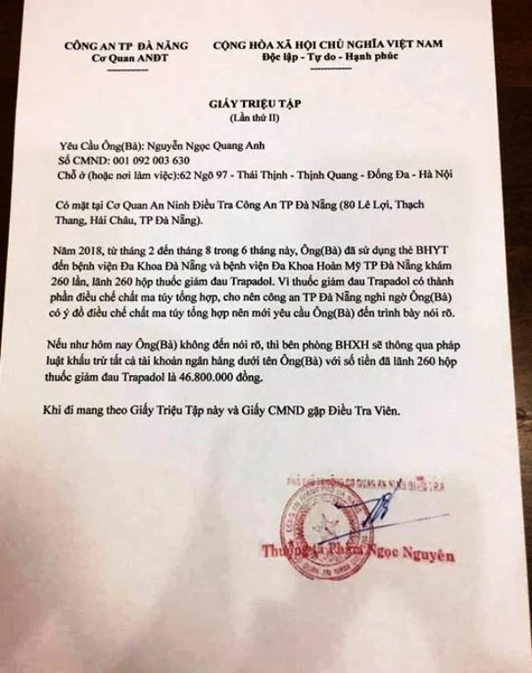 Giấy triệu tập giả mà nhóm lừa đảo gửi cho người dân để dọa. Ảnh: C.A