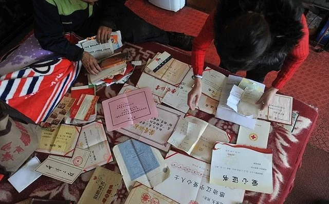 Gia tài của ông Triệu là số giấy chứng nhận ông đã dùng tiền giúp đỡ những hoàn cảnh khó khăn. Ảnh: ODD